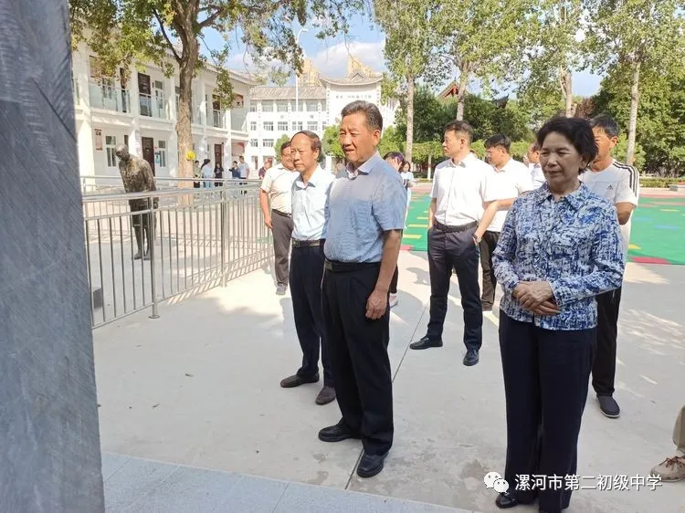 在漯河二中红色文化讲解员孙婉静的引领下,黄国英一行听取了关于优秀共产党员牛运仓的革命故事和三晋乡祠的历史变迁的生动讲述;了解了漯河励行中学(漯河二中前身)的创办、 革命思想在学校的传播 ,民先组织在励行中学的建立及重要作用;参观了陈谢兵团南征后第一次战斗英雄表彰大会原址、解放军第二野战军第四兵团成立原址、渡江战役誓师大会原址,瞻仰了受降仪式纪念碑、签字仪式铜像雕塑,重温战争年代的峥嵘岁月,真切地感受着当年发生在这里的一桩桩惊心动魄的红色故事。