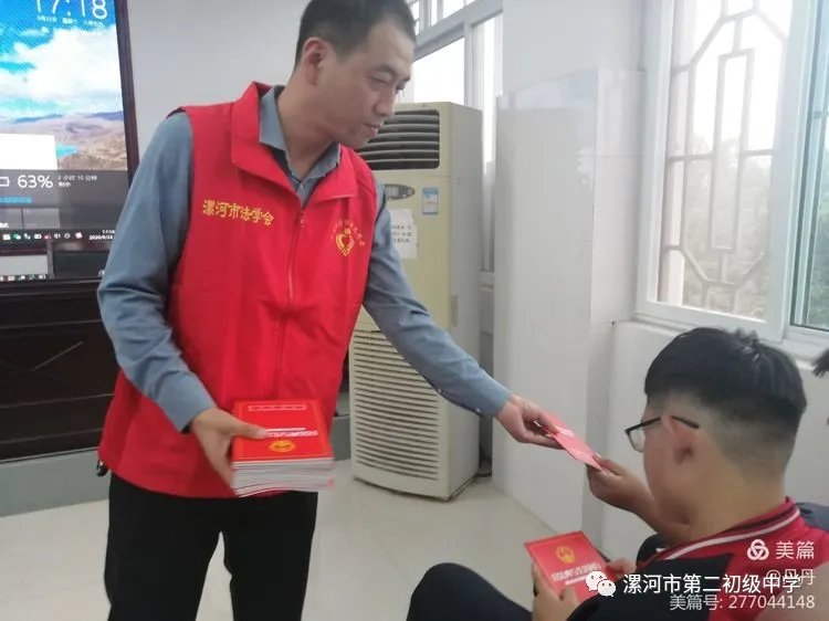 漯河市法学会志愿者给我校学生发放《民法典与生活同行》