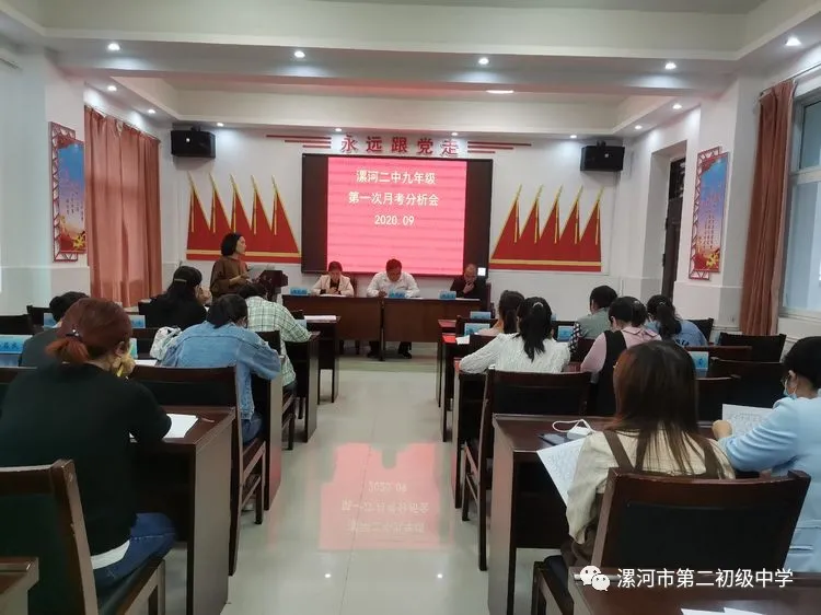 为了进一步加强学校教学质量管理,及时发现和改进教学工作中存在的问题,促进教育教学质量的稳步提升。9月22日下午,九年级召开了新学期第一次月考质量分析会。会议由年级主任谢素贞主持,党总支书记、校长马开收,副校长段彦召,工会主席兼教务处主任杨荷芳出席,九年级全体教师参加。