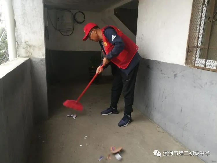 9月25日,根据全市“全民卫生大扫除”活动要求,漯河市第二初级中学党总支副书记张运亭组织带领志愿者对分包的“三无楼院”开展清扫行动,并要求各分包党支部充分发挥党支部战斗堡垒作用,科学组织、责任到人,以高质量党建工作助推全市创文工作高质量开展。