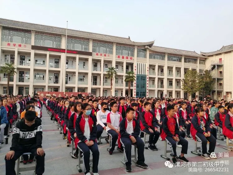 伴随着寒露后温暖的阳光,2020年10月9日下午,漯河市第二初级中学召开2020-2021学年上学期八年级第一次月考表彰会。 本次表彰会由八年级年级主任潘玲主持,教科室主任孙辉和年级副主任邰晓红出席,八年级全体师生参加。