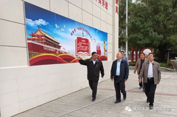 10月10日下午,市委教育工委书记、市教育局党组书记甘德建,市委教育工委副书记、市教育局党组副书记、副局长孙洪义到漯河二中进行调研,学校党总支书记、校长马开收、党总支副书记张运亭、副校长毛旭、段彦召等学校领导陪同。