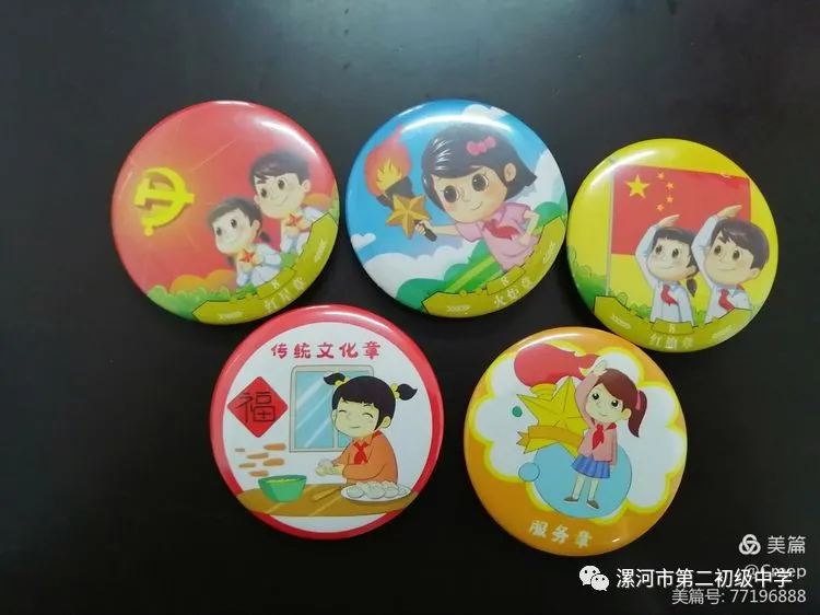接下来,漯河市第二初级中学举行少先队七年级“红领巾奖章”颁章仪式,少先队星章分为基础章和特色章两种,基础章是红星章、红旗章、火炬章三种,特色章则多种多样,结合我校实际,我们的特色章是传统文化章和服务章两种。本次评选获得奖章的同学共有125人,其中七年级60人。