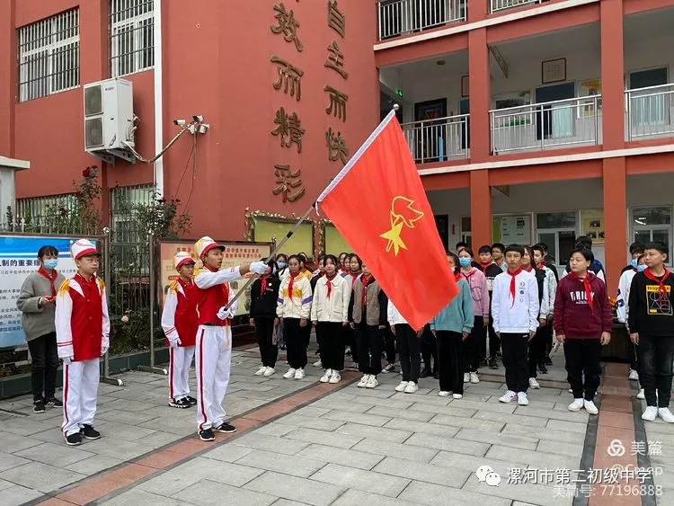 10月13日是中国少年先锋队成立71周年的纪念日。为开展好少先队组织教育工作,增强少先队员的组织归属感和荣誉感,引导少先队员“扣好人生第一粒扣子,迈好人生第一步”,10月13日下午,漯河市第二初级中学举行七年级少先队建队仪式暨“红领巾奖章”颁章仪式。漯河市第二初级中学党总支书记、校长马开收,校党总支副书记张运亭,副校长毛旭等领导出席了仪式。仪式由团委副书记肖林漭主持。