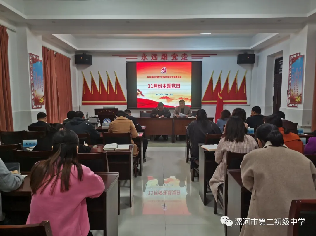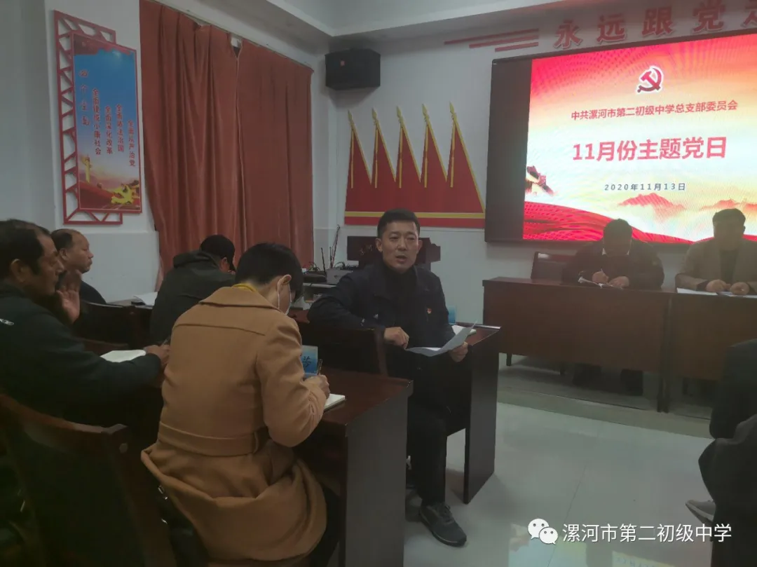 首先,党总支副书记张运亭向全体党员宣读了中共漯河市委教育工作委员会 《关于开展11月份“主题党日”活动的通知》,并对本次活动做出详细的安排。