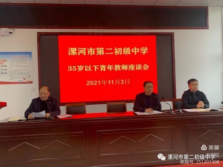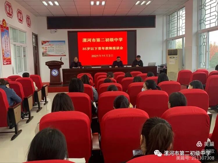 为加强与青年教师的沟通与交流,进一步了解他们的工作和生活,促进青年教师专业成长,2021年11月3日下午,漯河市第二初级中学召开了35岁以下青年教师座谈会。本次座谈会由教科室主任孙辉主持,吴金涛校长和主抓教学的王学文校长参加了会议。 吴金涛校长首先肯定了我校青年教师是一支健康的,积极向上的优秀团队。青年教师虽然年纪轻,但在工作岗位上可能会承担更重要的工作,挑更重的担子,请青年教师不忘初心,珍惜职业给我们带来的荣誉感。同时,他给青年教师提出:第一,如何认识自己;第二,如何发展自己;第三,如何成就自己。善良是根本,认真是基础,要一直保持热情;要发挥年轻的优势,尽情发挥特长;教育教学中要不断总结、反思,不要随波逐流。另外吴校长还要求青年老师们要树立远期成长目标,尽快成长为合格的、优秀的教师。